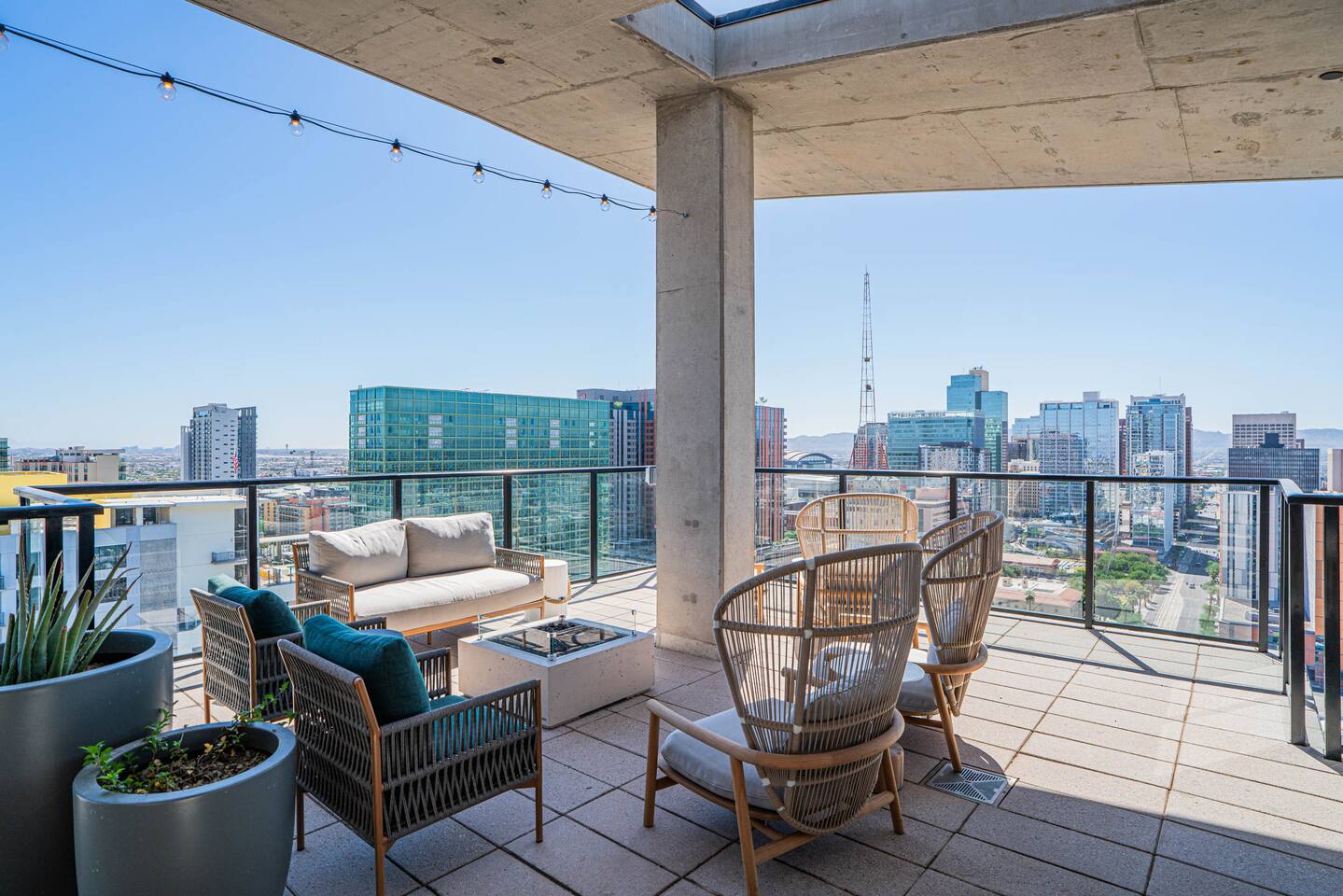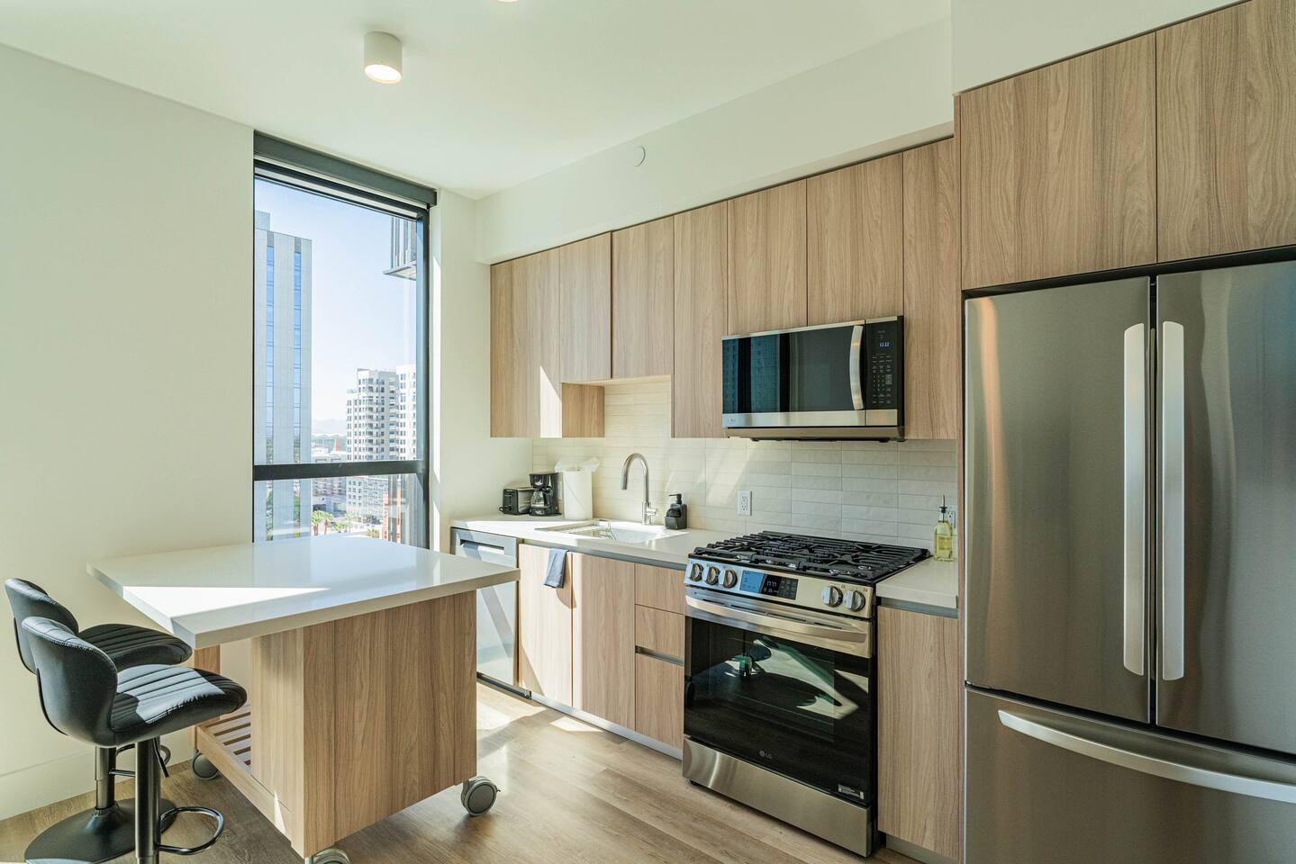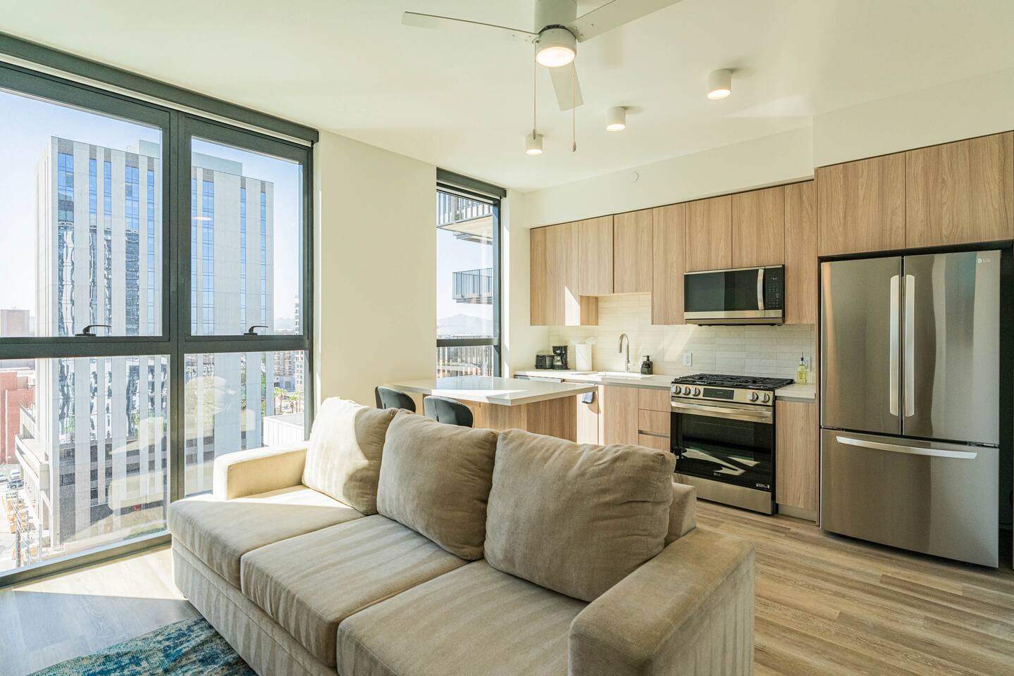 ✨ Why You’ll Love It ✦ Located in the heart of Downtown Phoenix, close to dining, nightlife, and attractions 🌆 ✦ Access to amazing building amenities, rooftop pool, gym, sauna, BBQ & more 🏊♀️ ✦ Secure building with modern finishes and resort-style comfort ✦ In-unit washer & dryer 🧺 ✦ Perfect for couples, business travelers, or small groups (up to 3 guests) 🛏 Sleep Comfortably ✦ Rest peacefully in a cozy double bed with soft linens and a calming atmosphere. The bedroom offers comfort and privacy for restful nights, while an additional sleeping option accommodates a third guest with ease. 🛋 Lounge & Recharge ✦ Unwind in the inviting living room featuring a plush sofa and smart TV, perfect for movie nights or catching up on your favorite shows. Enjoy a bright, modern space with climate control for your comfort year-round. 💻 Work with Ease ✦ Stay productive at the dedicated workspace designed for remote work or study. Fast Wi-Fi and a peaceful setup help you stay focused while away from home. 🍽 Cook & Dine with Ease ✦ Prepare your favorite meals in the fully equipped kitchen 🍳, complete with modern appliances, cookware, and dining essentials. Whether it’s coffee in the morning or dinner for two, everything you need is right here. 🧺 Laundry Made Simple ✦ Enjoy the convenience of your own washer and dryer, no need to pack extra! Essentials are provided to help keep your clothes fresh throughout your stay.