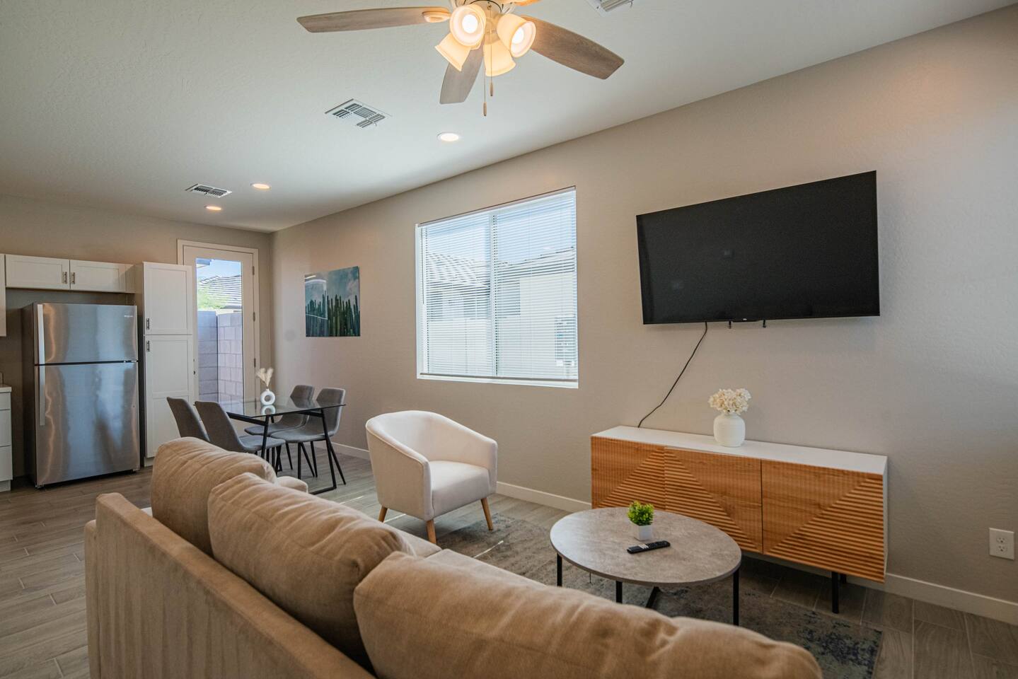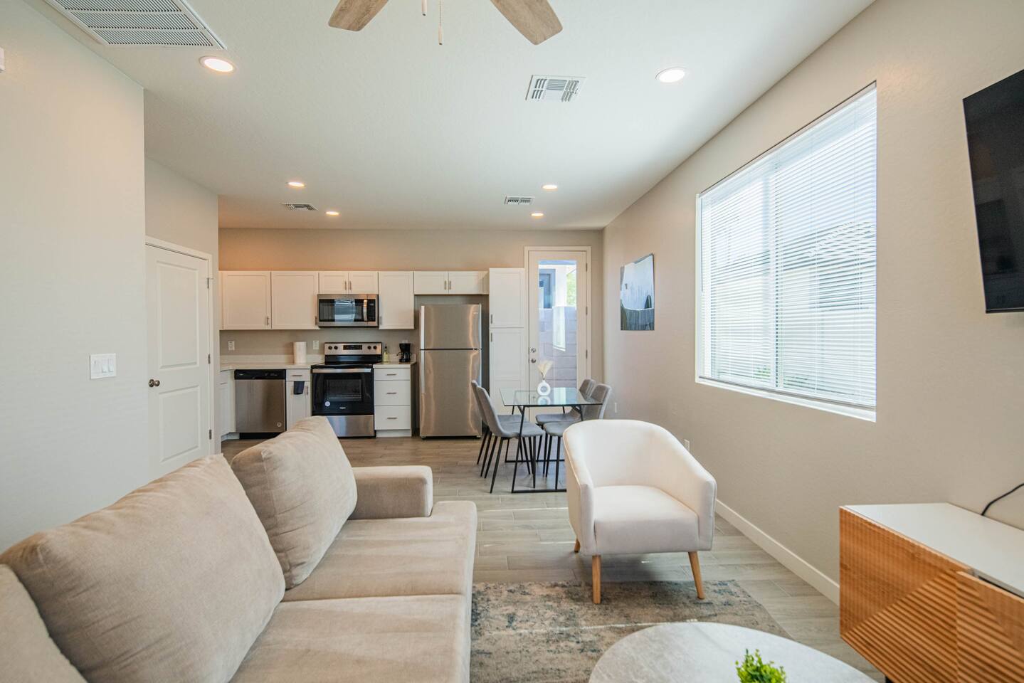 ๐ Rest Easy, Wake Happy Drift off in dreamy comfort and wake up refreshed, this home was designed for restful nights and bright mornings. ๐๏ธ Plush king-size bed with premium Beautyrest Hybrid mattress ๐ Blackout curtains for uninterrupted sleep ๐บ Smart TV ๐ฆ Thoughtful extras: reading lamps, iron & laundry setup ๐ฝ๏ธ Cook, Sip & Savor From your first coffee to a cozy dinner, the kitchen is fully equipped. ๐ณ Full-size stove, oven, microwave, fridge & dishwasher โ Coffee maker + starter brews to kick off your day ๐ด Stocked with cookware, bakeware, dishes & utensils ๐ฟ Bright, Fresh & Functional Bath Everything you need to get ready or wind down. โจ Modern bathroom with full shower & vanity ๐งผ Fresh towels, salon-style hair dryer & essential toiletries ๐ Centrally Located for Maximum Fun Adventure and entertainment are just minutes away: ๐ Thunderbird Conservation Park โ 3 miles ๐๏ธ Historic Downtown Glendale โ 4 miles ๐ฆ Wet โnโ Wild Phoenix โ 8 miles ๐ญ Arizona Broadway Theatre โ 5 miles ๐ State Farm Stadium โ 7 miles