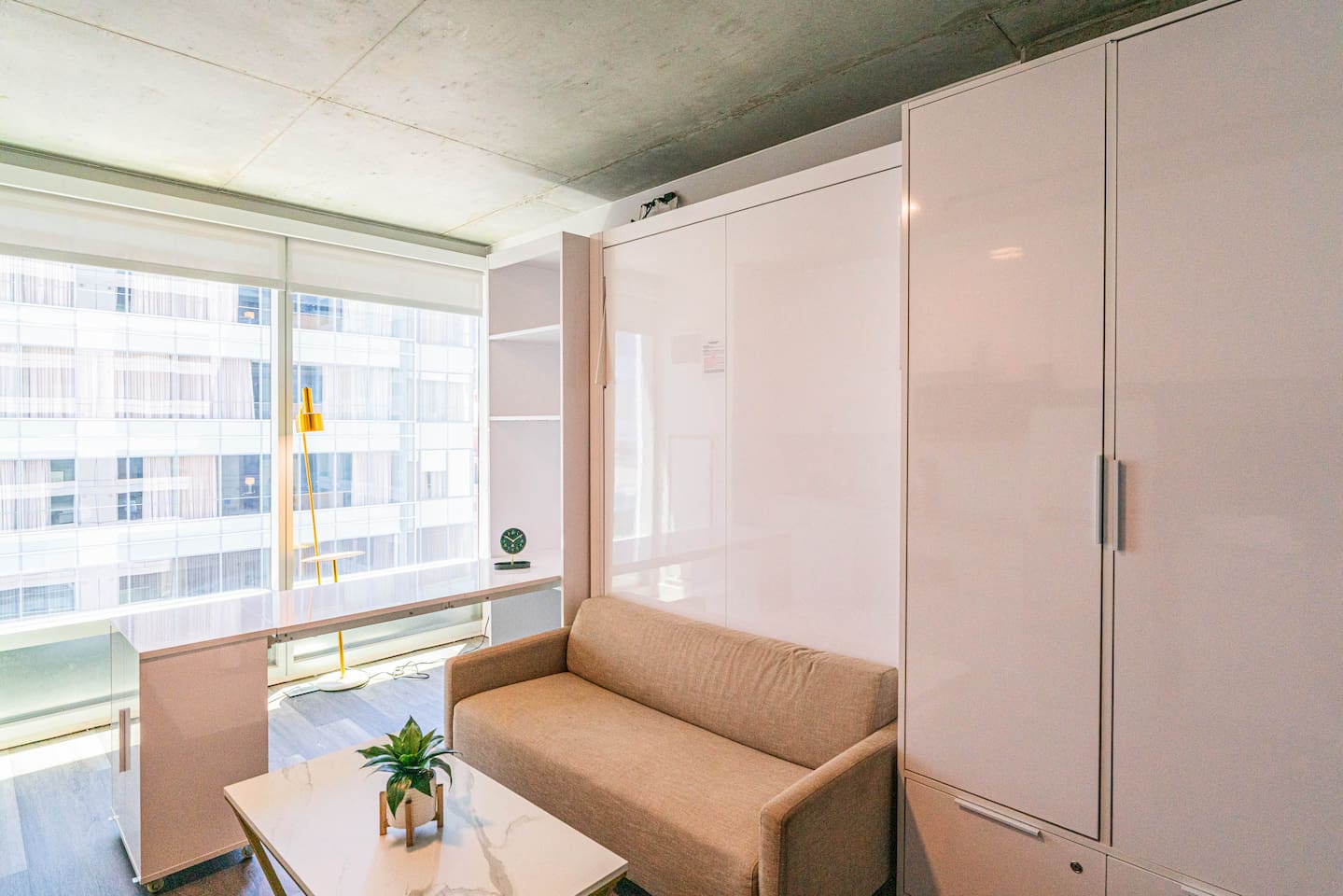 ✨ Why You’ll Love It: ✦ Prime Downtown location, walk to attractions, food & nightlife ✦ Resort-style amenities & secure building access ✦ Paid on-site parking ✦ In-unit laundry ✦ Perfect for work trips or weekend getaways 🛏 Sleep Comfortably ✦ Rest easy on a high-quality Murphy double bed that folds neatly away to maximize your living space. Enjoy the privacy of a full bathroom, closet, and a clean, calming atmosphere. 🛋 Lounge & Recharge ✦ Relax after a long day in the cozy living area, featuring a 40” TV, comfy sofa, coffee table, and climate-controlled air to keep you cool or cozy, no matter the season. 🍽 Cook & Dine with Ease ✦ Whether you're prepping a quick breakfast or a full dinner, the well-equipped kitchen includes everything you need from major appliances to cookware and dining essentials all ready for you to enjoy. 🧺 Laundry Made Simple ✦ No need to overpack! This studio includes in-unit laundry with the essentials to help keep your clothes fresh throughout your stay. 📍Unbeatable Location Nearby Attractions ✦ Civic Space Park – 3 min walk ✦ Roosevelt Row (murals, bars, art walks) – 15 min walk ✦ Arizona Science Center – 15 min walk ✦ Phoenix Art Museum – 6 min drive ✦ The Van Buren (live music venue) – 10 min walk ✦ Arizona Center Mall & CityScape – under 10 min walk ✈️ Easy Access ✦ Phoenix Sky Harbor Airport – 10 min drive ✦ Downtown Convention Center – 10 min walk ✦ Quick access to highways & public transit 🛡️ Safe & Walkable ✦ Located in one of Phoenix’s most walkable and lively neighborhood. The area is clean, well-lit, and regularly patrolled, perfect for exploring both day and night with peace of mind.