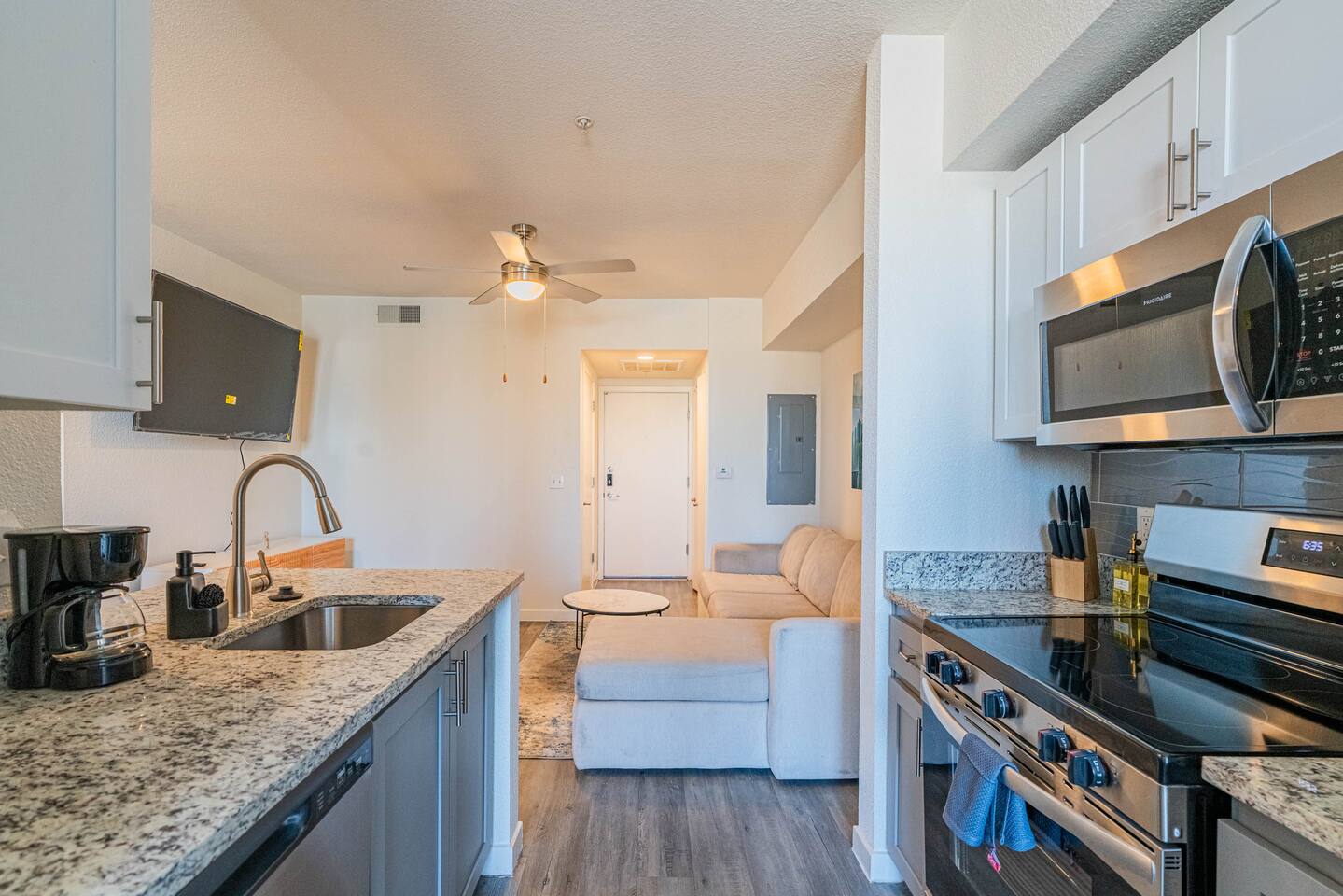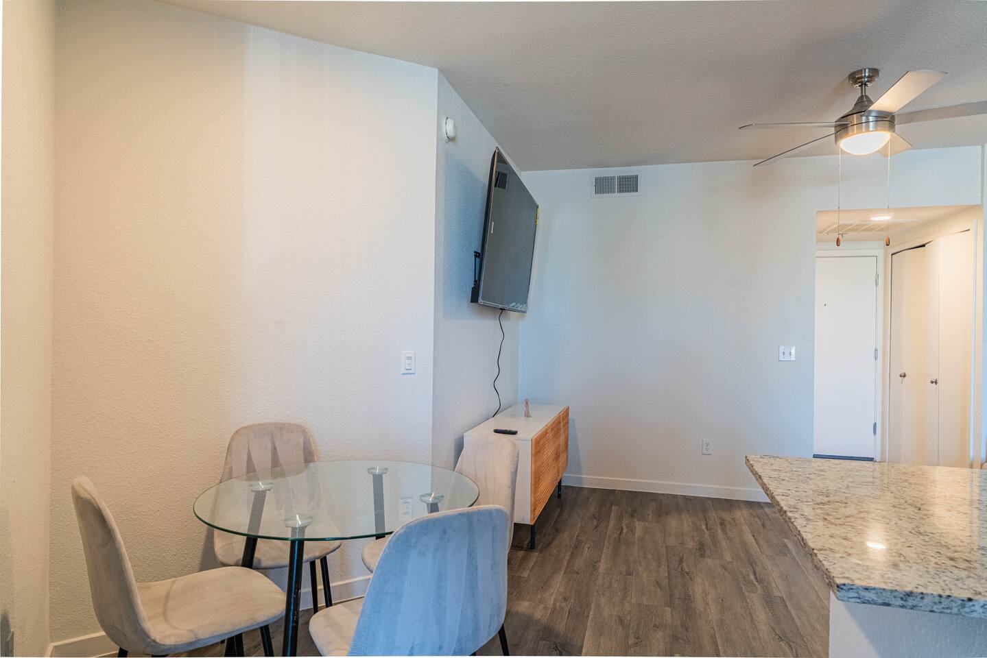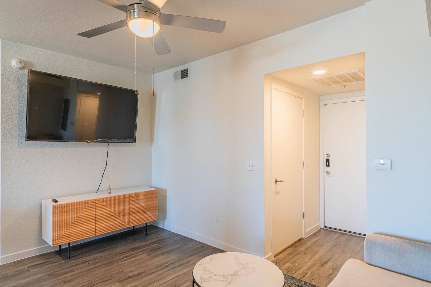 โ About This Space Experience resort-style living in this modern studio apartment at The Access Apartments in Tempe, Arizona, a stylish desert oasis with every comfort at your fingertips. ๐๏ธ Bedroom Area Relax in a queen-sized bed with premium bedding, soft linens, and blackout curtains for a peaceful nightโs sleep. ๐๏ธ Living Area Unwind in the cozy lounge space with a Smart TV for streaming and high-speed Wi-Fi perfect for work or leisure. ๐ณ Full Kitchen The fully equipped kitchen features a refrigerator, stove, oven, microwave, and coffee maker, complete with cookware, dishes, and utensils for home-cooked meals. ๐งบ In-Unit Laundry A washer and dryer are conveniently included in your unit for longer, worry-free stays. ๐ Bathroom with Bathtub Refresh and recharge in your modern full bathroom with a bathtub, stocked with soft towels and toiletries for your comfort. ๐ด Resort-Style Community Amenities Enjoy full access to the luxurious community spaces at The Access Apartments, including: ๐ฆ Resort-style swimming pool ๐ช Modern fitness center & spin room โจ๏ธ Outdoor spa and gas firepit ๐ฝ๏ธ Community summer kitchen & grilling stations ๐ Rooftop basketball court ๐น๏ธ Resident clubhouse with game room & lounge ๐ถ Bark Park for your furry friends (pet-friendly units only) ๐ Electric vehicle charging stations โ Starbucks coffee bar ๐ฆ Amazon package lockers ๐งบ On-site vending machines ๐งฝ Hotel-inspired cleaning & concierge services (by Spruce) ๐ Controlled access gate and free parking