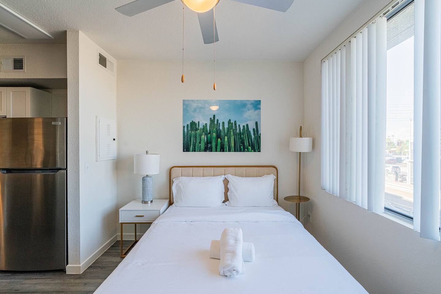 ๐ข Unwind in this bright and modern studio at The Access Apartments! Relax in comfort with a cozy queen bed, a fully equipped kitchen, and a private bathroom with bathtub, everything you need for a seamless and enjoyable stay. ๐ฆ Enjoy resort-style amenities including a sparkling swimming pool, ๐ช modern fitness center, and ๐ฎ resident lounge for relaxation or fun. ๐ Located just minutes from State Farm Stadium and the Westgate Entertainment District, this is your perfect Tempe getaway!
