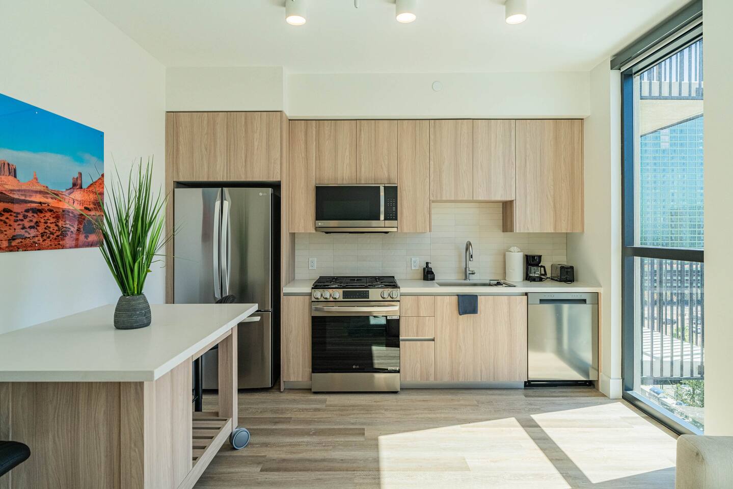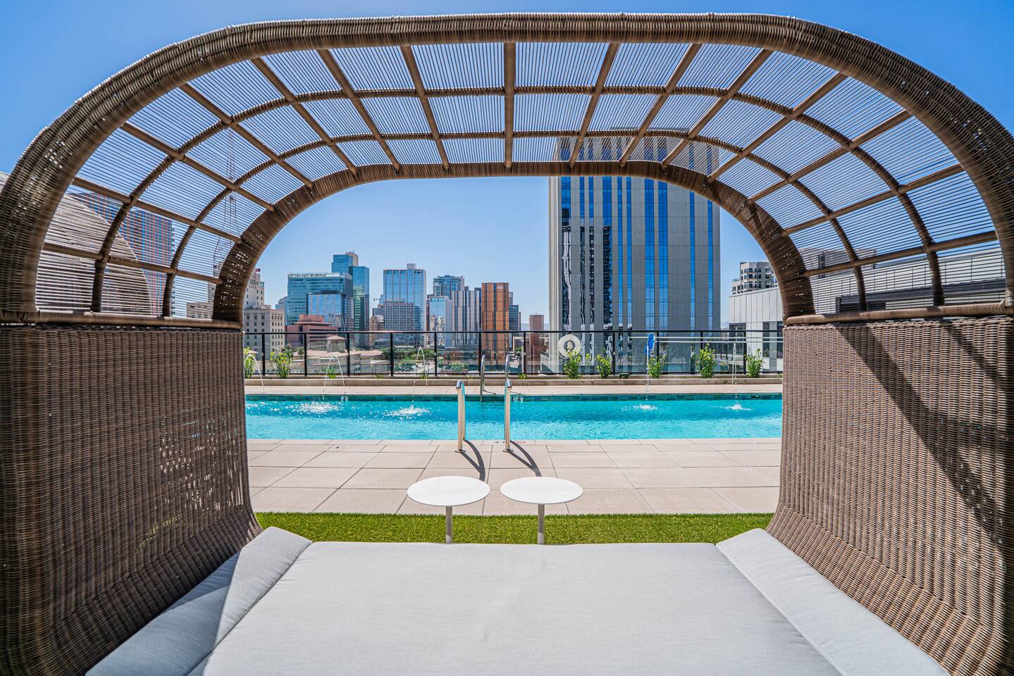 π₯Stay where style meets comfort! This modern 1BR/1BA offers full access to amazing amenities, two pools πββοΈ, rooftop kitchen & lounge π, gym & sauna π§ββοΈ, gaming area π±, and even a dog park & pet spa! Walk to downtown spots or relax and recharge above the city lights.π