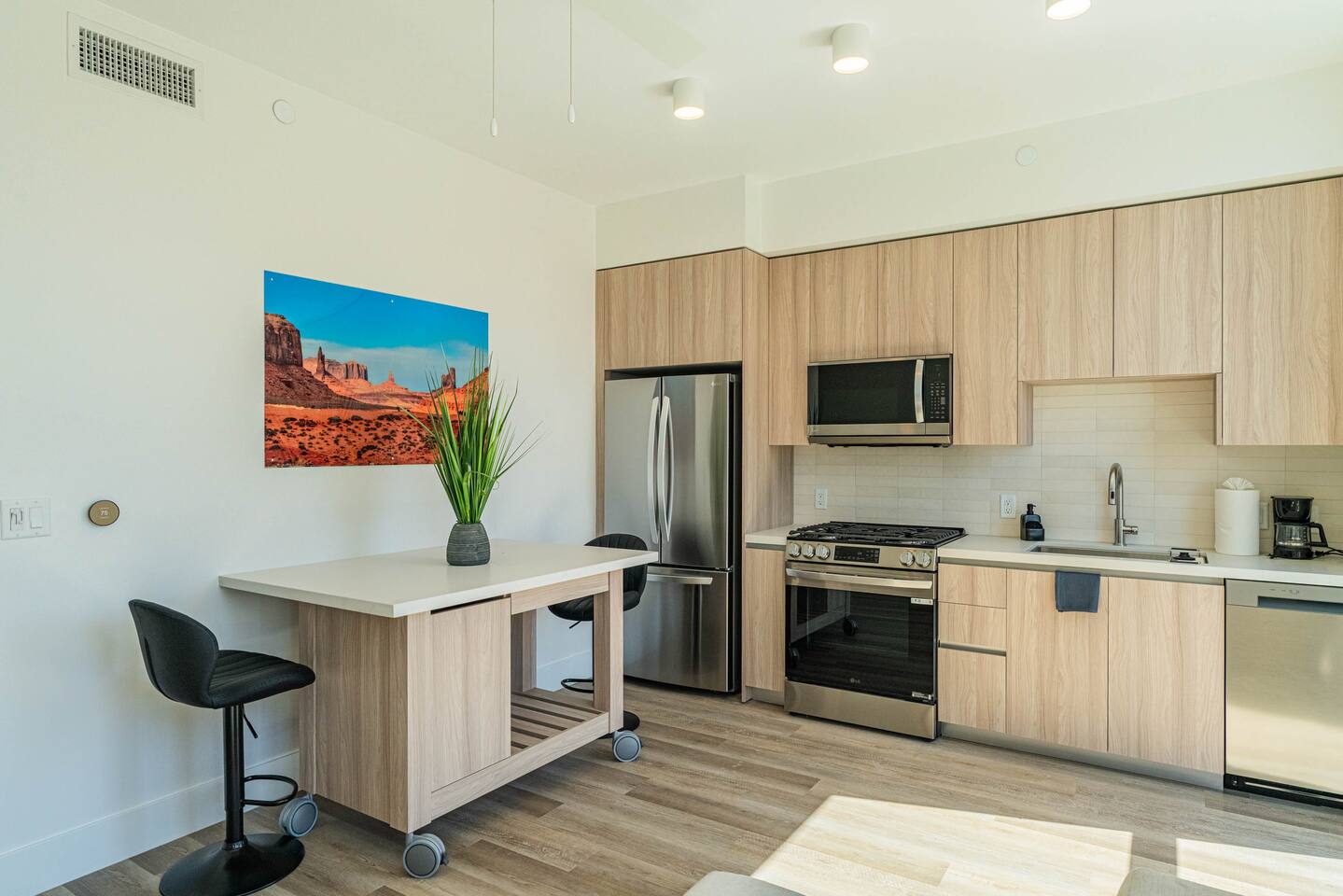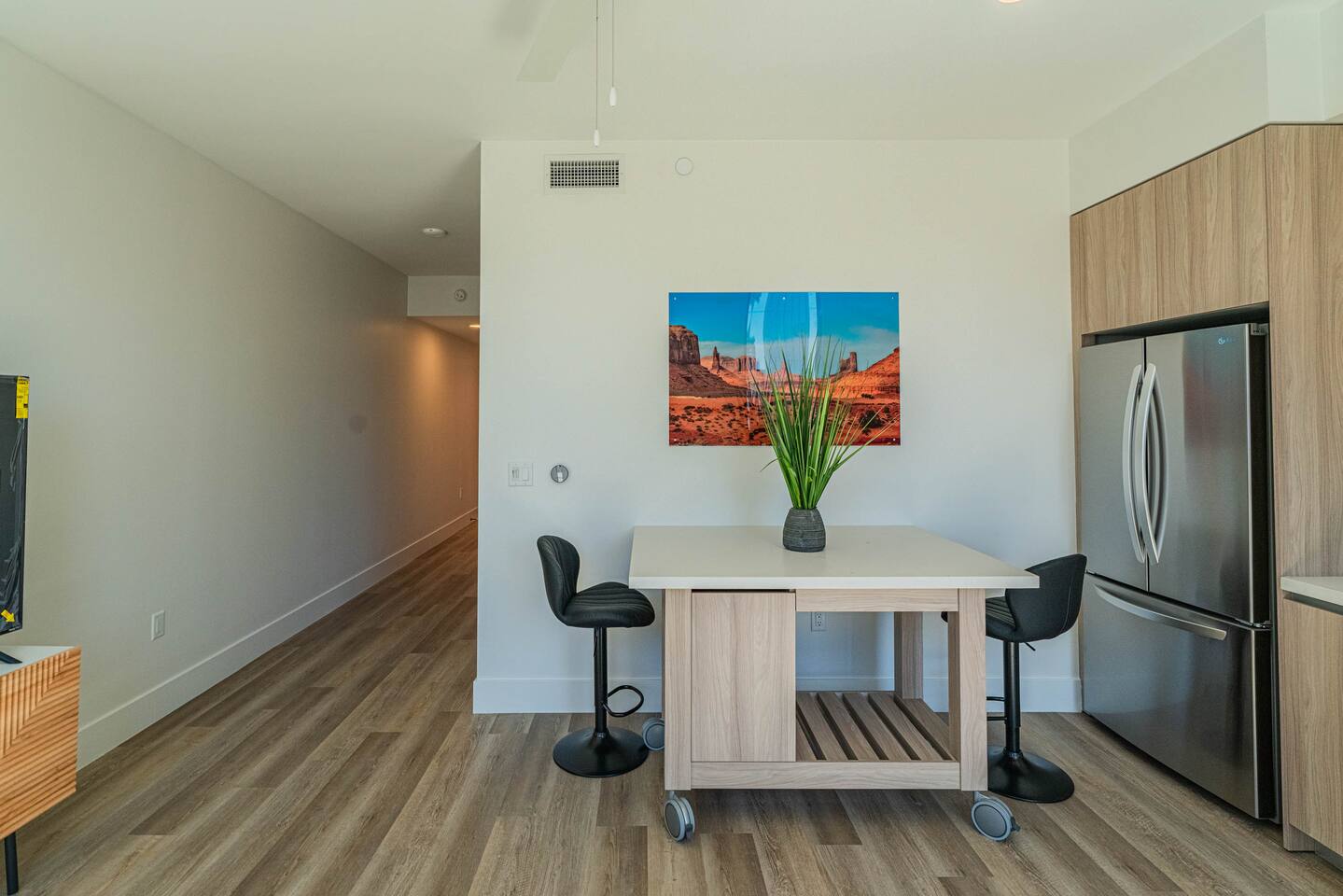 β¨ Why Youβll Love It β¦ Located in the heart of Downtown Phoenix, close to dining, nightlife, and attractions π β¦ Access to amazing building amenities, rooftop pool, gym, sauna, BBQ & more πββοΈ β¦ Secure building with modern finishes and resort-style comfort β¦ In-unit washer & dryer π§Ί β¦ Perfect for couples, business travelers, or small groups (up to 3 guests) π Sleep Comfortably β¦ Rest peacefully in a cozy double bed with soft linens and a calming atmosphere. The bedroom offers comfort and privacy for restful nights, while an additional sleeping option accommodates a third guest with ease. π Lounge & Recharge β¦ Unwind in the inviting living room featuring a plush sofa and smart TV, perfect for movie nights or catching up on your favorite shows. Enjoy a bright, modern space with climate control for your comfort year-round. π» Work with Ease β¦ Stay productive at the dedicated workspace designed for remote work or study. Fast Wi-Fi and a peaceful setup help you stay focused while away from home. π½ Cook & Dine with Ease β¦ Prepare your favorite meals in the fully equipped kitchen π³, complete with modern appliances, cookware, and dining essentials. Whether itβs coffee in the morning or dinner for two, everything you need is right here. π§Ί Laundry Made Simple β¦ Enjoy the convenience of your own washer and dryer, no need to pack extra! Essentials are provided to help keep your clothes fresh throughout your stay.