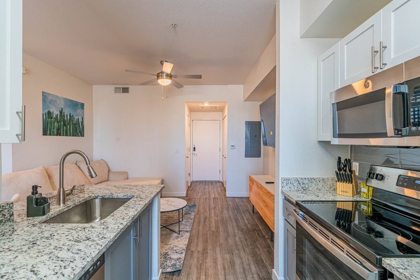 โ About This Space Experience resort-style living in this modern studio apartment at The Access Apartments in Tempe, Arizona, a stylish desert oasis with every comfort at your fingertips. ๐๏ธ Bedroom Area Relax in a queen-sized bed with premium bedding and soft linens for a peaceful nightโs sleep. ๐๏ธ Living Area Unwind in the cozy lounge space with a Smart TV for streaming and high-speed Wi-Fi perfect for work or leisure. ๐ณ Full Kitchen The fully equipped kitchen features a refrigerator, stove, oven, microwave, and coffee maker, complete with cookware, dishes, and utensils for home-cooked meals. ๐งบ In-Unit Laundry A washer and dryer are conveniently included in your unit for longer, worry-free stays. ๐ Bathroom with Bathtub Refresh and recharge in your modern full bathroom with a bathtub, stocked with soft towels and toiletries for your comfort. ๐ด Resort-Style Community Amenities Enjoy full access to the luxurious community spaces at The Access Apartments, including: ๐ฆ Resort-style swimming pool ๐ช Modern fitness center & spin room โจ๏ธ Outdoor spa and gas firepit ๐ฝ๏ธ Community summer kitchen & grilling stations ๐ Rooftop basketball court ๐น๏ธ Resident clubhouse with game room & lounge ๐ถ Bark Park for your furry friends (pet-friendly units only) ๐ Electric vehicle charging stations โ Starbucks coffee bar ๐ฆ Amazon package lockers ๐งบ On-site vending machines ๐งฝ Hotel-inspired cleaning & concierge services (by Spruce) ๐ Controlled access gate and free parking
