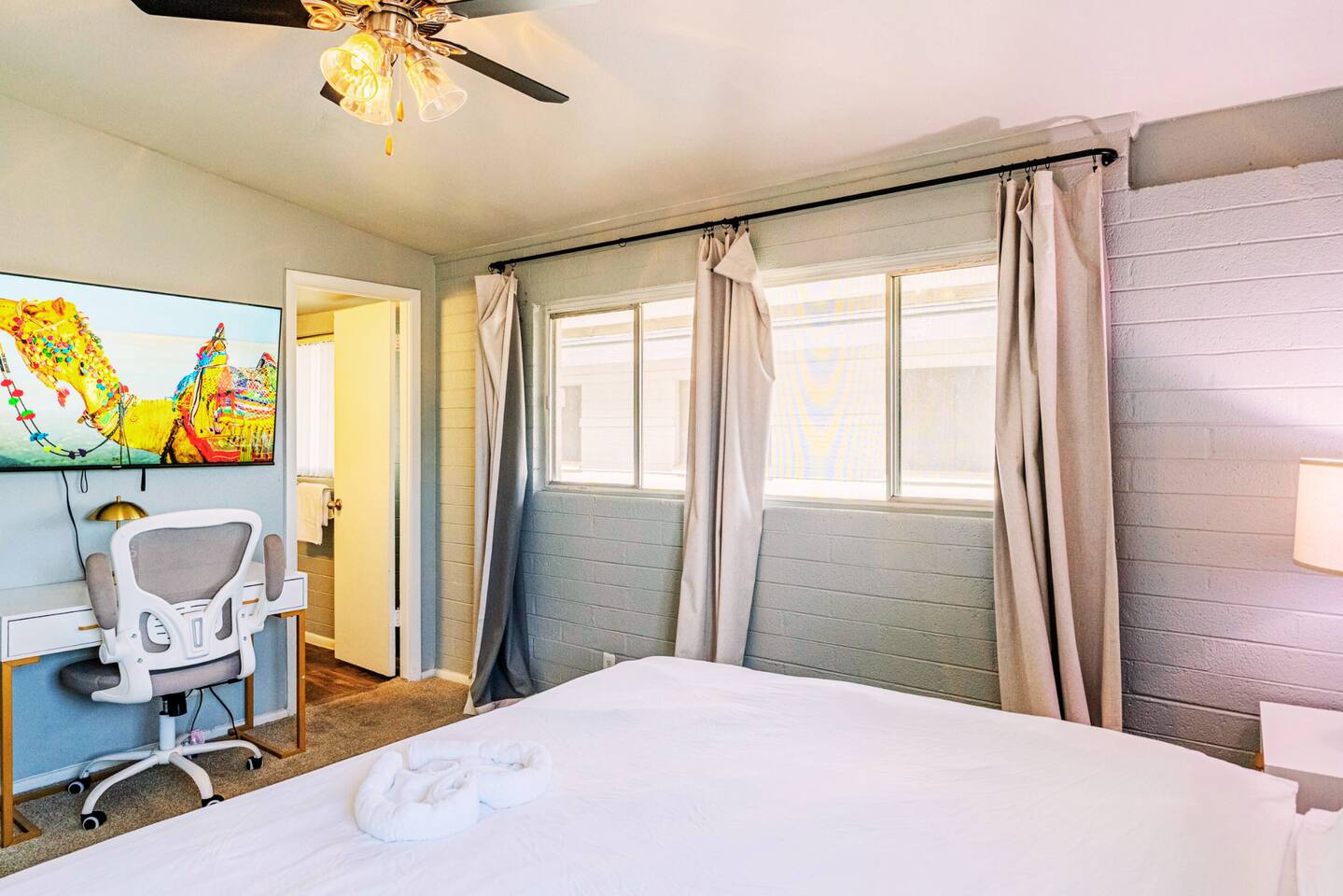 Scottsdale Event & Leisure Stay 🏜️✨ Perfect for tourists, outdoor enthusiasts, and art & culture lovers. This spacious 2 bedroom 2 bathroom unit offers comfort, convenience, and the ideal base for exploring all Scottsdale has to offer. Enjoy fast Wi‑Fi, a fully equipped kitchen, and free parking. After hiking, browsing Old Town Scottsdale, or visiting galleries and museums, relax in the pool or fitness center, perfect for unwinding or staying active. Whether you're visiting for sightseeing, shopping, hiking, or a weekend getaway, this apartment has everything you need for a hassle-free and memorable Scottsdale experience. Living Room ✦ Couch ✦ Accent chair ✦ 60 inches smart tv Kitchen ✦ Fully equipped ✦ Drip coffee maker ✦ Complimentary coffee and creamer ✦ Toaster Dining ✦ Dining table Bedroom 1 ✦ King bed ✦ 60 inches smart tv ✦ Work desk and chair ✦ Closet ✦ Hangers Bedroom 2 ✦ King bed ✦ 60 inches smart tv 2 Full Ensuite Bathroom ✦ Walk-in shower and tub combo ✦ Iron and ironing board Community Amenities ✦ Fitness Center ✦ Picnic Area with BBQs ✦ Card-Operated Laundry Facility ✦ Dog Park ✦ Swimming Pools ✦ Fire pit Prime Location: ✦ Old Town Scottsdale - 8mins drive ✦ Camelback Mountain - 18mins drive ✦ Scottsdale Fashion Square - 7mins drive ✦ Mcdowell Sonoran Preserve - 25mins drive ✦ Scottsdale’s Museum of the West - mins drive Parking ✦ Free on-site parking!