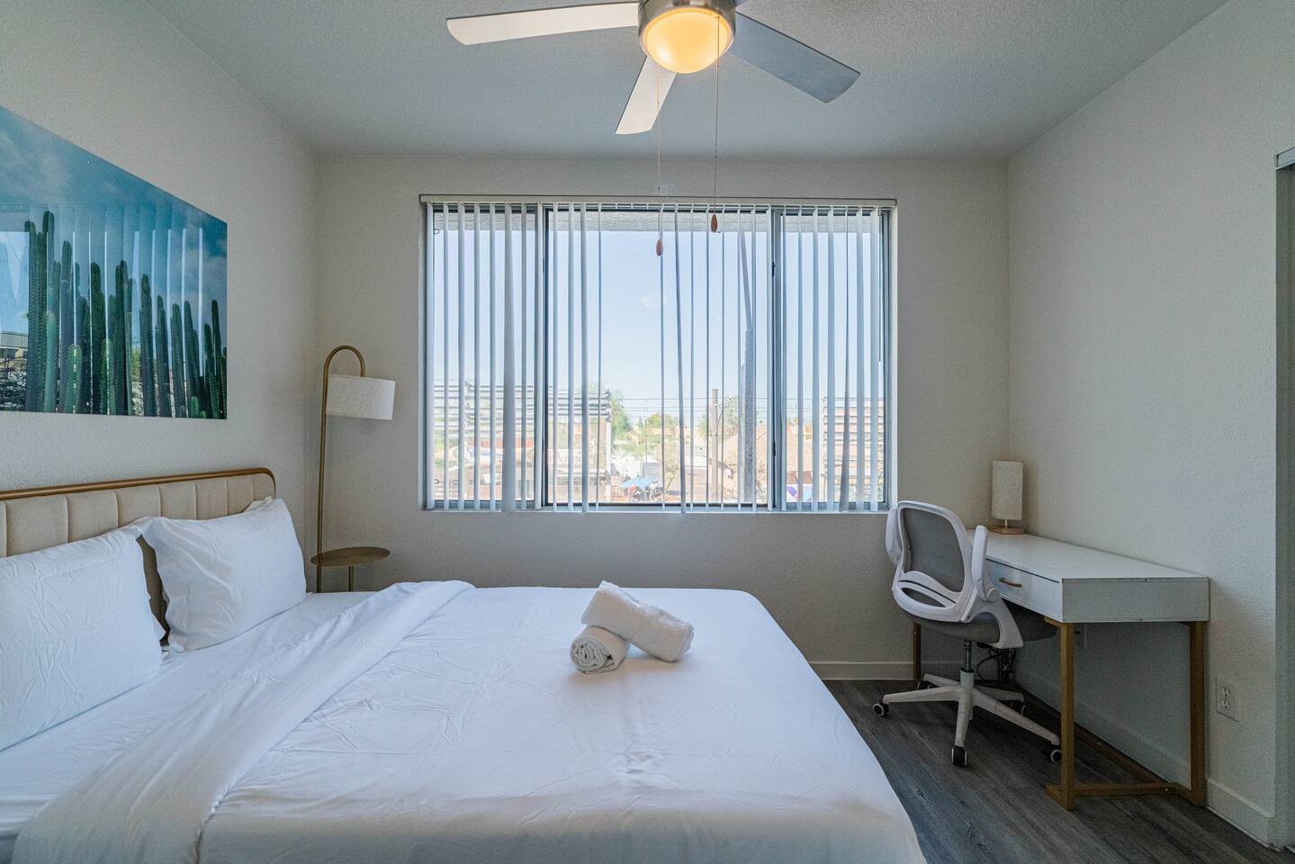 ๐ข Unwind in this bright and modern studio at The Access Apartments! Relax in comfort with a cozy queen bed, a fully equipped kitchen, and a private bathroom with bathtub, everything you need for a seamless and enjoyable stay. ๐ฆ Enjoy resort-style amenities including a sparkling swimming pool, ๐ช modern fitness center, and ๐ฎ resident lounge for relaxation or fun. ๐ Located just minutes from State Farm Stadium and the Westgate Entertainment District, this is your perfect Tempe getaway!