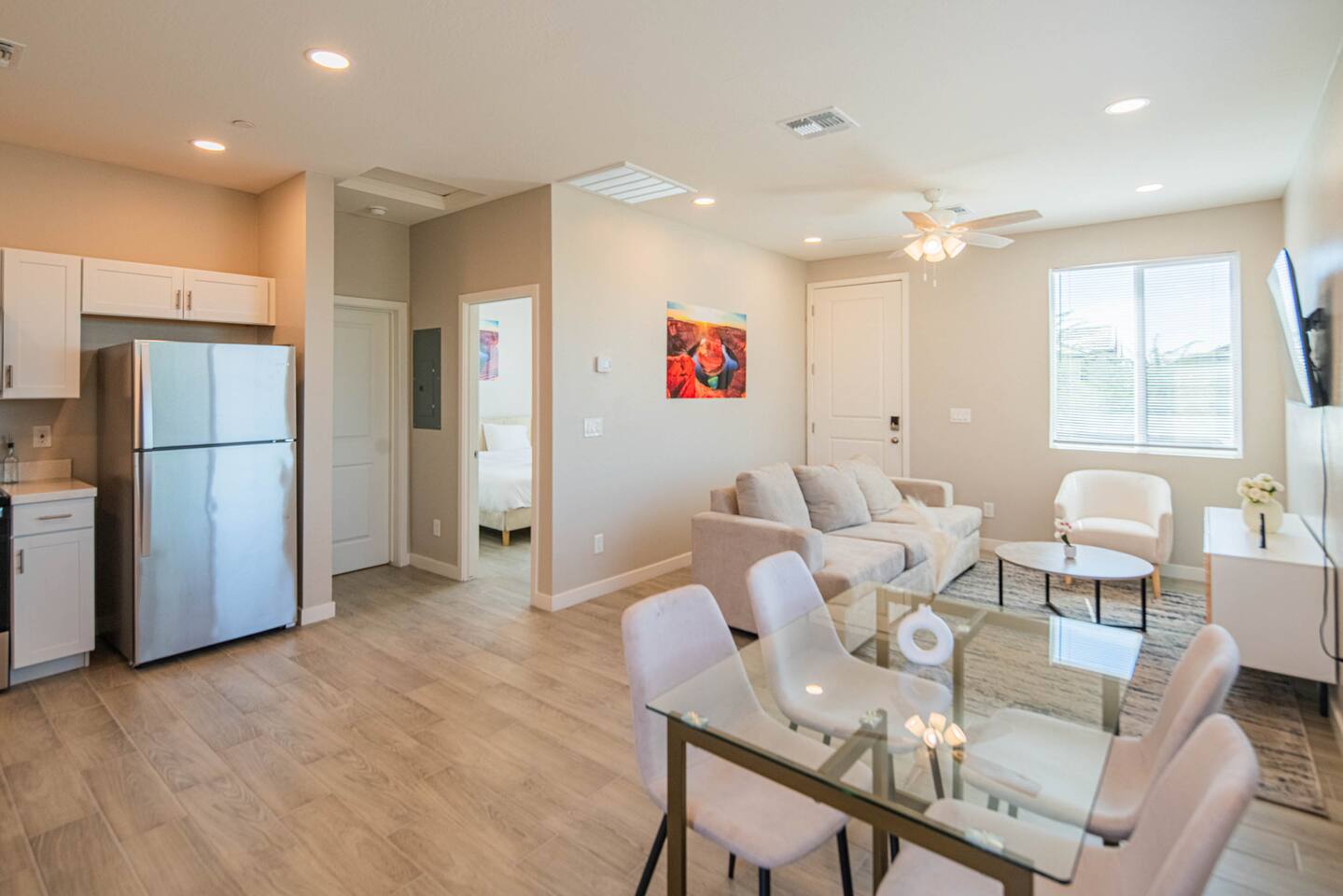 π All Yours: No Sharing, No Stress From the moment you arrive, the space is entirely yours. Enjoy total privacy in this cozy 1-bedroom, 1-bath retreat, what you see is what you get (and then some!). Hereβs whatβs waiting for you: β Spacious open-concept living & dining area with a 65" Smart TV perfect for movie nights or game day β Sleek, fully stocked kitchen with everything you need to cook, sip, and snack β Serene bedroom featuring blackout curtains and an ultra-comfy Beautyrest Hybrid king mattress β In-unit washer & dryer to keep things fresh during longer stays β Complimentary on-site parking right outside β Easy self-check-in/check-out via secure smart lock β Extras: generous closet space And when you're ready to explore: π Quick access to major highways for day trips or commutes π Valley Metro bus & light rail just minutes away πΆββοΈ Walkable to local parks, restaurants, and everyday essentials Weβve set everything up so you can show up, settle in, and feel at home, no hassle, just comfort.