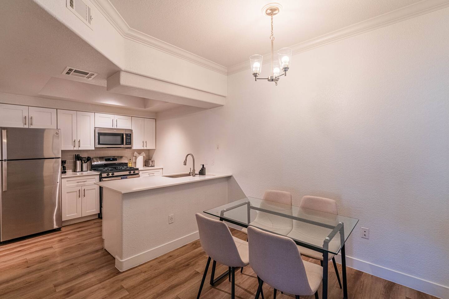 This thoughtfully designed 2-bedroom, 2-bath apartment is perfect for families, couples, business travelers, or anyone seeking more space and privacy during their stay. You'll enjoy: ๐๏ธ Two spacious bedrooms โ Each room features plush (Queen beds or King beds), cozy linens, ample closet space, and relaxing vibes. Ideal for a restful nightโs sleep after a day of exploring, working, or relaxing. ๐ฟ Two full bathrooms โ No need to share! Both bathrooms are clean and modern, stocked with fresh towels, a hairdryer, and essential toiletries. Perfect for getting ready without the wait. ๐ณ Fully equipped kitchen โ Cook like you're at home with stainless steel appliances, quartz countertops, a full-size fridge with ice maker, oven, microwave, coffee maker, toaster, and all the cookware, dishes, and utensils youโll need. Whether itโs a morning coffee or a full dinner, weโve got you covered. ๐๏ธ Open-concept living and dining area โ Designed for relaxation and connection. Enjoy a large comfy sofa, dining table, and tasteful decor that makes the space feel welcoming and elevated. ๐บ Smart TV + fast WiFi โ Stream your favorite shows, log into your Netflix account, or get some remote work done with strong, reliable internet. ๐งบ In-unit washer & dryer โ Pack light and stay fresh! Full-size appliances available for your convenience during longer stays. ๐ Private patio or balcony โ Enjoy your morning coffee or a quiet evening outside on your own private space. A great place to take in the Arizona sunshine ๐ ๐ฟ Bright and airy layout โ Natural light fills the space through oversized windows, complemented by high ceilings, modern lighting, and hardwood-style flooring throughout. ๐ง Smart home features โ From USB charging ports to modern lighting, ceiling fans, and central AC/heating, the unit is equipped for a seamless, comfortable stay. ๐ช Optional workspace setup โ Ask us if you need a dedicated desk or work-from-home setup.