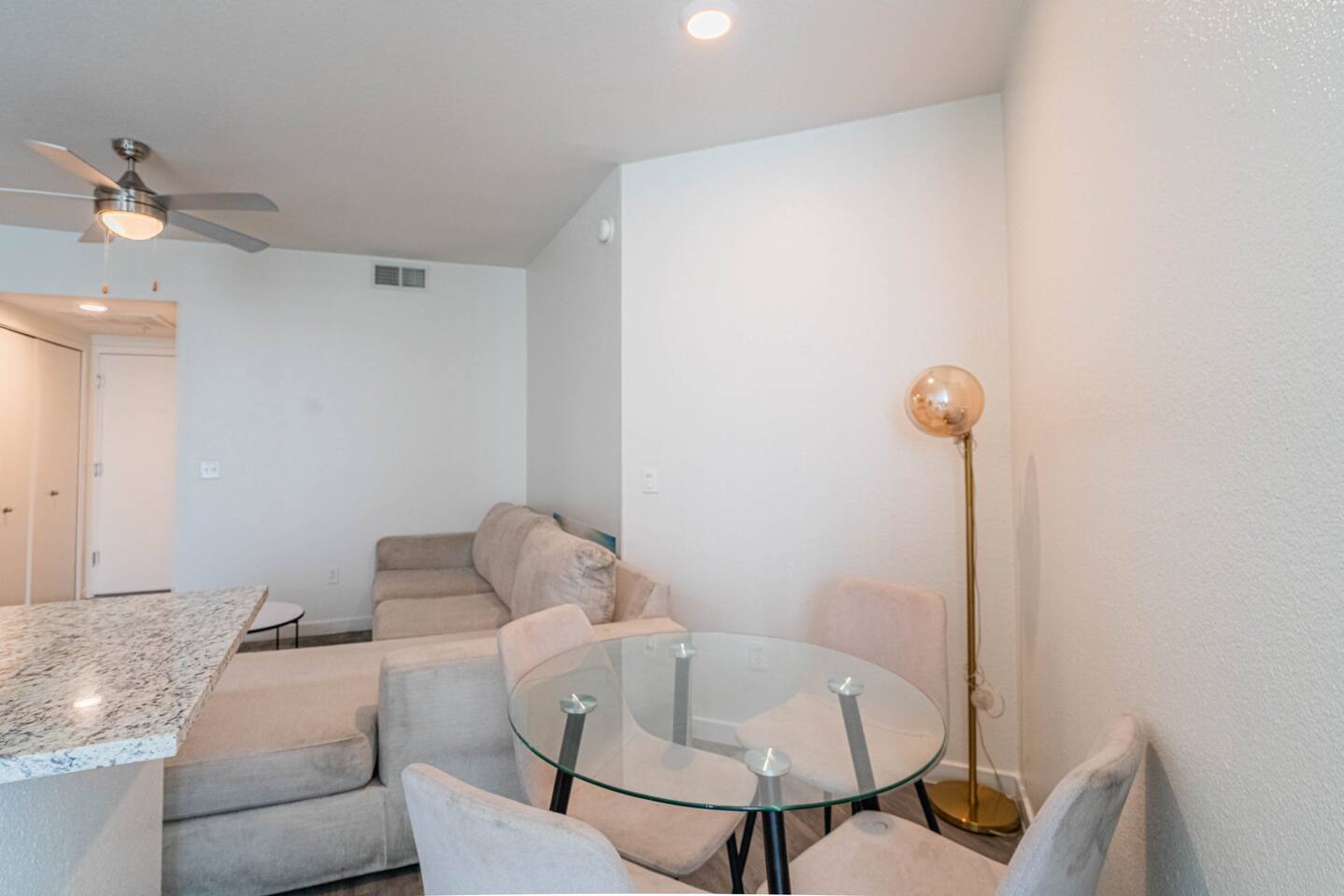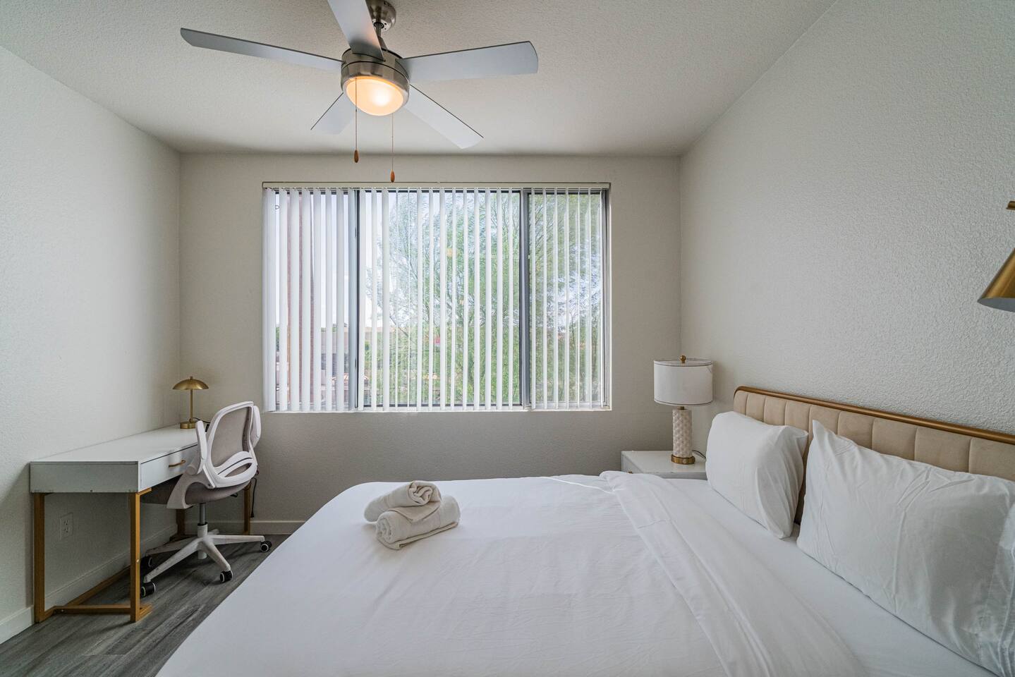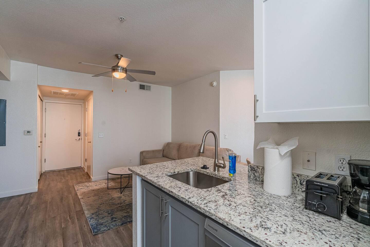 ✨ Why You’ll Love It ✦ Modern studio layout with thoughtful design ✦ Resort-style amenities in a secure, gated community ✦ Free parking included ✦ Fast WiFi throughout the home ✦ Ideal for solo travelers, couples & business stays ✦ On-site EV charging available 🛏 Relax & Sleep Comfortably ✦ Settle into a clean and inviting studio featuring a plush Queen bed, fresh linens, and plenty of space to unwind after a busy day. 🛋 Lounge, Dine & Recharge ✦ Relax with your favorite shows on the 65" Smart TV, enjoy a meal at the dining area, or simply stretch out in your peaceful private space. Designed with comfort in mind, this studio has everything you need to feel right at home. 🍽 Cook & Dine with Ease ✦ The well-equipped kitchenette includes essential appliances, cookware, and dining basics. Perfect for preparing breakfast, a light meal, or a simple snack. 🧺 Stay Fresh with Ease ✦ Community laundry facilities make it simple to wash and refresh clothes during longer stays.