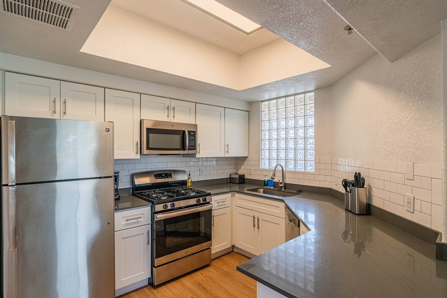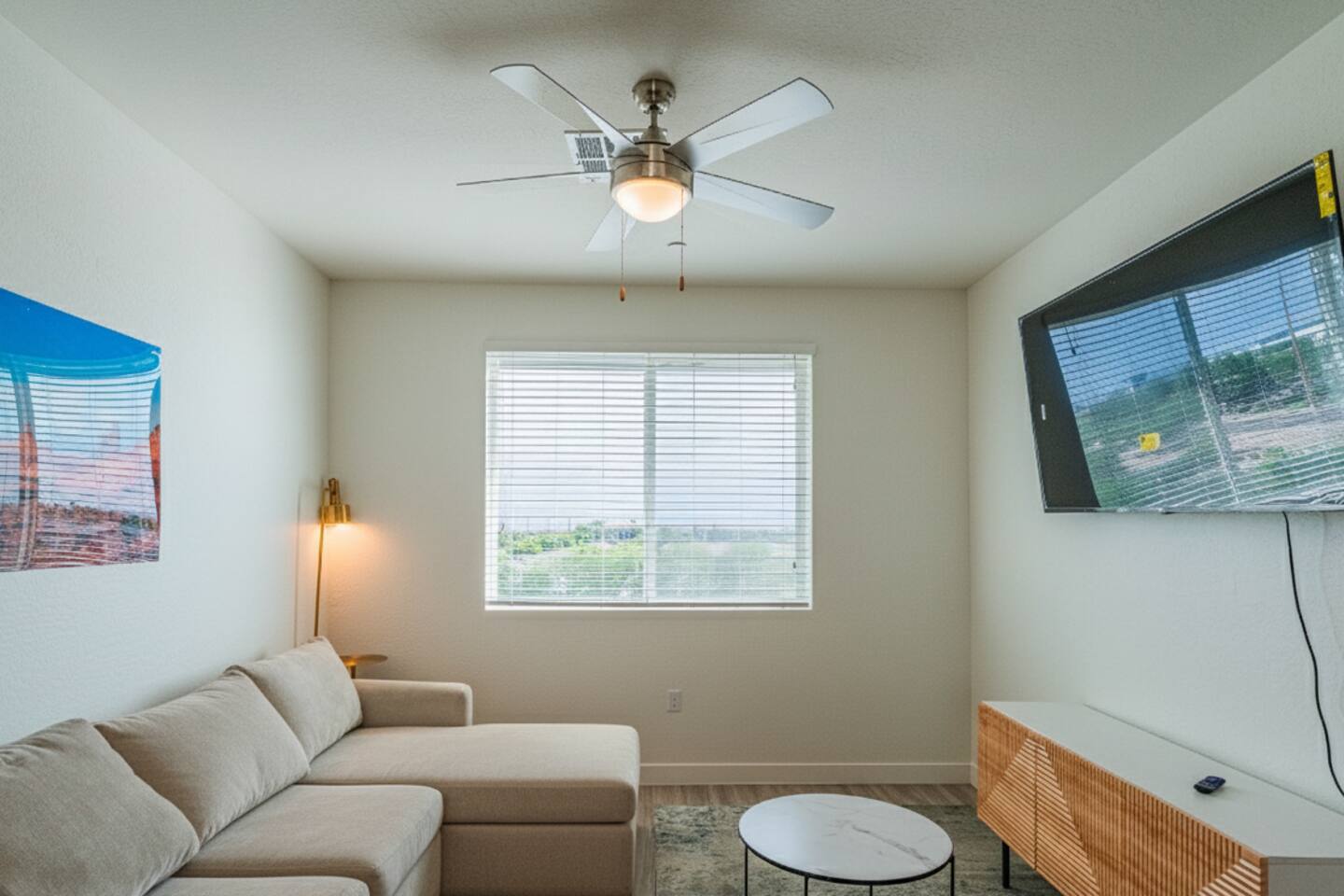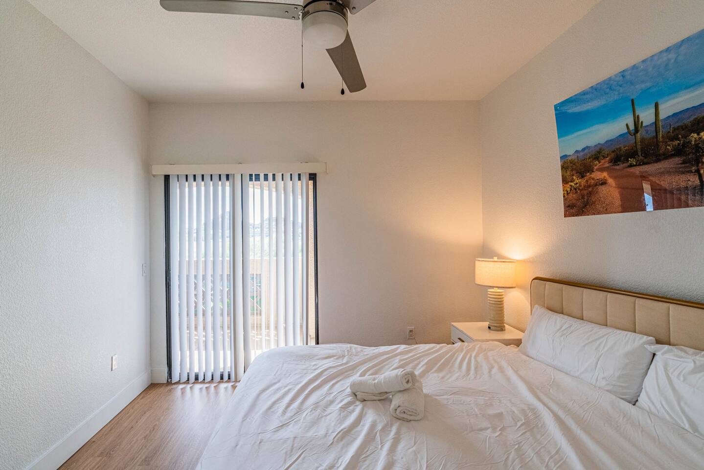 This thoughtfully designed 2-bedroom, 2-bath apartment is perfect for families, couples, business travelers, or anyone seeking more space and privacy during their stay. You'll enjoy: 🛏️ Two spacious bedrooms – Each room features plush (Queen beds or King beds), cozy linens, ample closet space, and relaxing vibes. Ideal for a restful night’s sleep after a day of exploring, working, or relaxing. 🚿 Two full bathrooms – No need to share! Both bathrooms are clean and modern, stocked with fresh towels, a hairdryer, and essential toiletries. Perfect for getting ready without the wait. 🍳 Fully equipped kitchen – Cook like you're at home with stainless steel appliances, quartz countertops, a full-size fridge with ice maker, oven, microwave, coffee maker, toaster, and all the cookware, dishes, and utensils you’ll need. Whether it’s a morning coffee or a full dinner, we’ve got you covered. 🛋️ Open-concept living and dining area – Designed for relaxation and connection. Enjoy a large comfy sofa, dining table, and tasteful decor that makes the space feel welcoming and elevated. 📺 Smart TV + fast WiFi – Stream your favorite shows, log into your Netflix account, or get some remote work done with strong, reliable internet. 🧺 In-unit washer & dryer – Pack light and stay fresh! Full-size appliances available for your convenience during longer stays. 🌅 Private patio or balcony – Enjoy your morning coffee or a quiet evening outside on your own private space. A great place to take in the Arizona sunshine 🌞 🌿 Bright and airy layout – Natural light fills the space through oversized windows, complemented by high ceilings, modern lighting, and hardwood-style flooring throughout. 🧠 Smart home features – From USB charging ports to modern lighting, ceiling fans, and central AC/heating, the unit is equipped for a seamless, comfortable stay. 🪑 Optional workspace setup – Ask us if you need a dedicated desk or work-from-home setup.