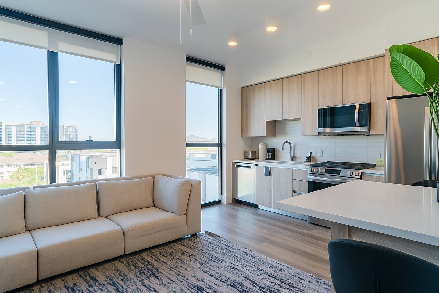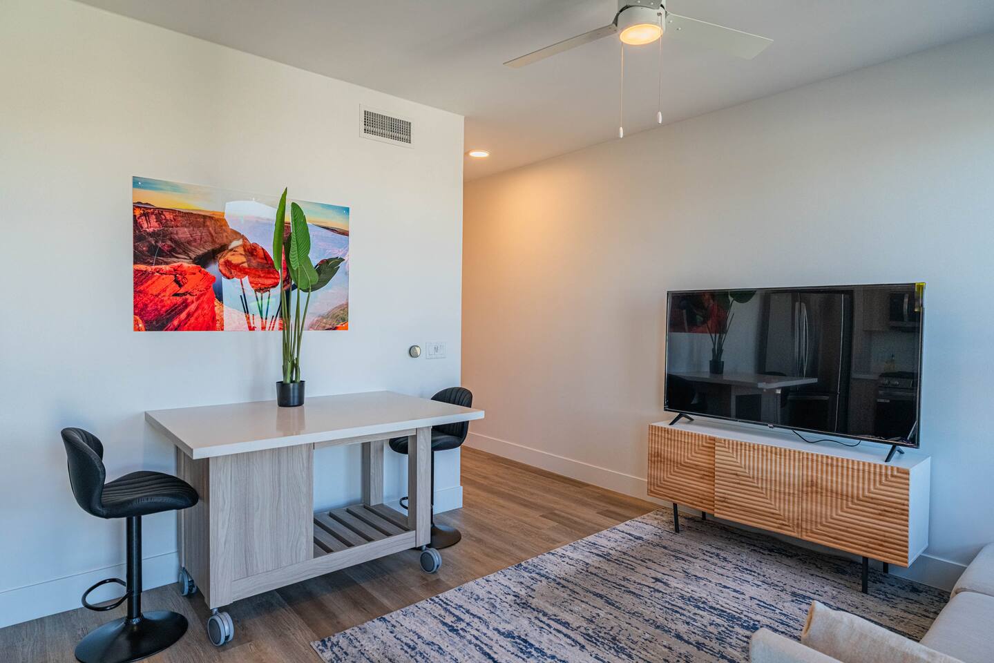 ✨ Why You’ll Love It ✦ Located in the heart of Downtown Phoenix, close to dining, nightlife, and attractions 🌆 ✦ Access to amazing building amenities, rooftop pool, gym, sauna, BBQ & more 🏊♀️ ✦ Secure building with modern finishes and resort-style comfort ✦ In-unit washer & dryer 🧺 ✦ Perfect for couples, business travelers, or small groups (up to 3 guests) 🛏 Sleep Comfortably ✦ Rest peacefully in a cozy double bed with soft linens and a calming atmosphere. The bedroom offers comfort and privacy for restful nights, while an additional sleeping option accommodates a third guest with ease. 🛋 Lounge & Recharge ✦ Unwind in the inviting living room featuring a plush sofa and smart TV, perfect for movie nights or catching up on your favorite shows. Enjoy a bright, modern space with climate control for your comfort year-round. 💻 Work with Ease ✦ Stay productive at the dedicated workspace designed for remote work or study. Fast Wi-Fi and a peaceful setup help you stay focused while away from home. 🍽 Cook & Dine with Ease ✦ Prepare your favorite meals in the fully equipped kitchen 🍳, complete with modern appliances, cookware, and dining essentials. Whether it’s coffee in the morning or dinner for two, everything you need is right here. 🧺 Laundry Made Simple ✦ Enjoy the convenience of your own washer and dryer, no need to pack extra! Essentials are provided to help keep your clothes fresh throughout your stay.